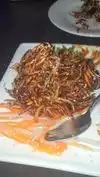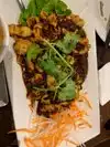 Bro and I stopped here in search of an Asian restaurant that would stand out. Well, we found it. This place was packed! So we figured that they must be doing something right. One thing we noticed was that we could see the kitchen staff hard at work right in front of our table. They were rolling pasta like crazy, wokking up aromatic delicacies, and filling orders left and right. We ordered Tsingtao Beer -- what else? -- but make the mistake of ordering sake. That was my first faux pas of the evening. I was told in no uncertain terms that Japanese rice wine is not served at a Malaysian restaurant. Oops! The food we ordered was Spicy Crispy Squids, served hot and spicy. They are described as "fried squids tentacles in chef's special sauce." They were served as a high mountain of tentacles rising about 2 inches from the plate. See pic. Both bro and I are well acquainted with squid, but these were the first we've tried that were fried in this fashion. Ironically, the more we ate them, the less we were sure whether we liked them or not. Strange. We then noticed 2 young ladies near us who also had a massive plate of fried squid tentacles on their table. We asked them if they liked the squid. One of them said yes, while the other wasn't quite sure. So 3 out of 4 people surveyed weren't sure if they liked this 10 dollar appetizer. Of course we ate all of them, because that's how we're wired. If you pay for 'em, you eat 'em.