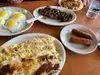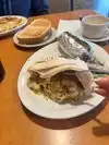 Super attentive, friendly, convenient, and super fast. Everything arrived felt like almost as soon as we decided what we wanted and ordered. Coffee inoffensive but lack luster, big mugs kept full. Food itself very average diner fare, plenty of it. Nothing I’d make a special trip for personally but served the need and did so well.