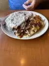 Had the cream chip beef. Asked what kind of bread I wanted,told her rye. Got plain rye not toast. Very little beef, but lots of cream. Coffee cup had lips from a woman's lipstick. Two long hairs also on the plate. Two 🌟 tops.