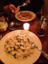 Convivial atmosphere, local regulars who swear by this place. Chose the bar as tables were full. Bar was great for dining here. Owner charmingly manages to get folks seated as quickly as space allows. Had day's special super fresh and delicate eggplant zucchini parm as appetizer, rich scollini wine for starters,then mains of tender braised lamb shank with pillow soft hand made gnocchi in red sauce, husband had oxtail papardelle. Desserts, made in house (not easy to be superb at mains and desserts), were very refined: berry Panna cotta, and ricotta marscapone cheesecake. Both were lite and rich at once. I love finding fresh lemon peel in the cream - always a nice touch. The quality, charm, atmosphere, happy staff and even the music make this a new favorite place. We will definitely be back. Try not to tell Too Many Others - I want to be able to get a seat.