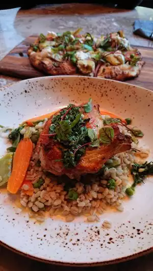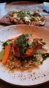 We stopped here for a light lunch during a recent visit. We had a Tri-Tip sandwich, Millet & Chickpea salad, and an Artichoke Flatbread pizza. All were very good, although I thought the salad was a little small for the price. The restaurant has a very interesting décor. We were seated upstairs, which was nice. The server was friendly and attentive. The prices are a little high, but not out of line with other restaurants in the area. Overall, a nice place for lunch.