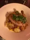 I booked here after seeing the menu on TripAdvisor, well evidently they changed the menu and it is much more limited now. The servers were down right rude, I was told when I arrived that our table was upstairs, I asked if there was a bathroom up there and they said yes. I then went to use the restroom and the server told me it was not open that evening so I had to go back downstairs. It then took about 25 minutes before anyone came to get our drink order. We ordered the charcuterie board and truffle mushroom pizza to start, they were both great. The entrees were a different story. There weren't a ton of choices so the waitress recommended the crab lasagne, so I gave it a try. I was barely able to eat half of it, essentially it was a bowl of cream with a little crab inside, one noodle and cheese on top. It was so rich and just too much cream I couldnt eat it. I was really excited to try this place, it is right around the corner from my apartment and seemed to be getting good reviews, I wish they stuck with the original menu.