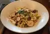 Very satisfying lunch. The mushroom pasta was delicious with a kick from red peppers. The mushrooms were varied and hearty. The burrata appetizer is amazing. I replicated it as soon as I got home. The crab melt sandwich is really just a glorified grilled cheese sandwich - very good, but not what I would have expected. Love, love the atmosphere and décor here. The waiter was terrific.