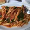 Very delicious! A hidden gem in the heart of downtown. I had spaghetti marina. My entree came with salad and bread!