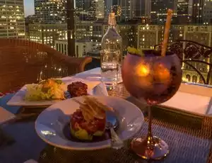 That's a must go if you love glamourous rooftop bars and nice views! They serve kind of french cuisine and have a great cocktail menu. When I was there they had a cool live band playing outside. I general it's a very chic atmosphere. Would definitely go again!