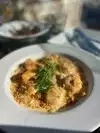 We didn’t have a reservation, just walked up and had to wait. The lady on reservations found us a table after 10-15 mins which was great! Tried the ravioli and fries, my partner tried the steak. Both were amazing, we did have a starter but I cannot remember for the life of me what it was. It is a little over priced but for location, the vibe and the taste, for me it was worth it. The view is insane, definitely worth for a special occasion but not for the average food & drinks evenings. Ps. To the server from Manchester, stop faking some tory accent 😂