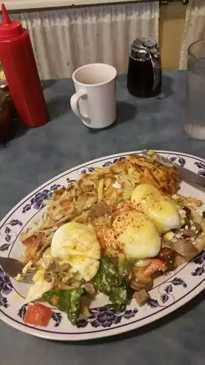 Voula! What a firecracker and Papou Pete loves to joke and visit with everyone. This cozy little nest of neighbors is best earlier in the morning before it gets too busy, especially if you're not a neighbor and want to park close. My hubby loves the Hobo Omelette and I find the New York Scramble to be quite unique and tasty. You'll always have leftovers! The plates are generously piled with savory breakfast choices! The waffle looks inviting, but I've never tried it and the breakfast burrito is enticing, but I just keep sticking to my favorite. Did I tell you they're fast? They get the food out quick, so there's not a long wait with the kiddos! Oh, and the freezer jam! Get the toast so you can enjoy the freezer jam! They have a good basic brewed coffee, but there's no problemo with bringing in your own cup of Herkimer Coffee from just up the street. Thank you so much Voula & Pete! You give us a great place to wake up and enjoy the morning :) We love your place!