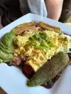 Went there for late breakfast, and the place was packed. We were quickly sat despite how busy they were. Service was wonderful and friendly. It is the kind of atmosphere/dining experience where you get the sense of genuine hospitality. I had the Greek Scramble which was delicious. And HUGE! Part of the concept seems to be three egg breakfasts, always served with a generous helping of hash browns (and I don't usually like hash browns, but these were particularly good). Mom had one of the specials which was a ground lamb benadict, and my sister had the South of the Border omelette. Everyone's dish was huge and fantastically made. For the omeletts and scrambles they do not skimp on ingredients and every bite is full of flavor. Great food, lovely family atmosphere; we will be back!