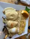 Awesome place for breakfast! The portions are huge for the price (average $10-13). We had the tiger shrimp eggs Benedict, chicken fried steak (the gravy was soooo good) and the Greek sausage with eggs. Left there totally stuffed. It's a family run place- even the yiayiá (grandma) was waiting tables. Incredibly warm and friendly service. And the biggest and tastiest baklava ever! We were there Easter Sunday and the place got pretty busy. Only street parking but worth the hunt. Definitely coming back when we're in town. So jealous of the locals to have breakfast place like this.