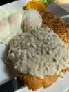 The food was excellent but the service was a little cold. It was busy but the gentleman seemed like he was too busy to pay attention. He did pay great attention to the locals. I would go back and give it a second chance because the food was very good and that's why I am giving it a 4. The bacon was huge and crispy. Eggs were done perfectly to order, over medium and over hard. Overall great but wish the service was a little bit better.