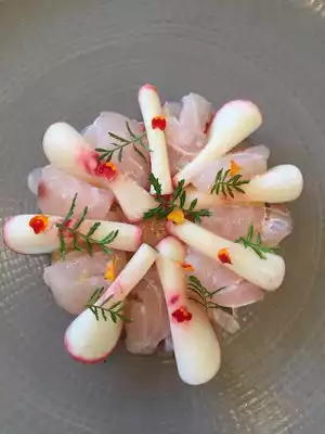 Expected more luxury and food finesse for the hype and price ; slick service and organisation perfect but the food was rather provencale in that there was a lot of bread: flatbread to start; thick slices of soda bread with seafood type bisque , croutons in pumpkin buckwheat pancake etc ; lettuce leaves v large and few slices of various radishes: a lot of seeming cheap ingredients