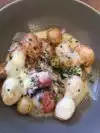 The food is well prepared, the service excellent and the atmosphere is bright and minimal. In hindsight, we should have ordered planning to share our food items. My husband had the gnocchi and I the omelet. Both were delicious but quite filling. Additionally we ordered the grilled bread. If we had ordered only one of items plus a salad and the bread, that would have been plenty. It just felt that we needed some sort of salad or vegetable to balance out the gnocchi and omelet. The menu itself is very, very limited. Even though the price includes the gratuity, it still felt a bit pricey.