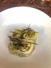 I decided to book the tasting menu, after watching Netflix documentary. My husband and I were visiting San Frnacisco so it was an opportunity to dine at one of her restaurant. We booked it for one night, when we met a friend an hour before the reservation time and wordered if he coud joined us. The restaurant made their best to accommodate him and we could dine the three of us. The table setup was very nice. The ambience is casual, with a European style. We were able to share all the dishes, as no individual meals were served. I found this presentation unique, since I have dined at many restaurants offering tasting menus, and have never experienced this presentation format before. All the dishes and flavors served paired very well: the oysters, the tomatoes, the gnocchi, fresh fish, squash, a kind of green salad presented differently, to end with a tasty dessert. My only comment is that my husband found some bubbles in his wine (and thought that it could be some soap left over). He commented this to the server, who took the glass away, then brought another empty glass, but did not replace the wine taken away. Even though we had ordered a bottle of wine (two in total), I would have expected that the waiter replaced the one taken away. As an example, a similar situation happened to me at another restaurant, where a glass was not clean, and I found it when I tasted the wine, and the waiter opened another bottle of the same wine, to replace the one taken away. Just a comment.