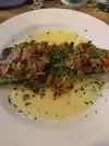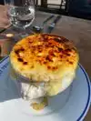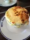 Great food, great menu, exceeded our expectations. Drove up here with our tour guide on his suggestion--he told us don't let the strip mall fool you. He was right. Awesome seating, just like you are in Paris. Cozy, comfy, and small, like a French cafe. Staff knows the menu inside out, and the specials, and the menu is not too large. Portions are perfect. I had this avocado halved, stuffed with shrimp that was coated with vinaigrette and delicious, and French onion soup. I was full until 11 pm. Great food.