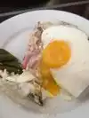Not a horrible meal but had a lot of issues with experience. Omelet was a great soft scramble served with well dressed bid lettuce on side. Needed a tad more of the black pepper cheese or another element. Not worth $24. Big mec was huge disappointment. Bordelaise sauce was reduced and flavorful. But the burger itself was bland and unremarkable. They drenched it in sauce and charged $37 which is ridiculous. Also how does a French restaurant with frites serve what clearly was frozen fries. On top of that the only parking is valet which is another $15 plus tip. Two sub bar entrees somehow costed me $100. Definitely would not go back despite loving the ambience. Service a tad slow. If this meal was like $30 I would probably not be so harsh but the outrageous prices has to be accounted for.
