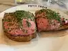 This was my first visit to chef Ludovic Lefebvre's classic French bistro. There is a second Petit Trois in Sherman Oaks that apparently is larger and has a similar but not identical menu. His fine dining spot Trois Mec used to be next door in a space that still has a "Pizza" sign out front. It's now used for extra seating on some evenings. Petit Trois is in a strip mall along Highland Ave. and has a pretty narrow interior with only high-top counter seating facing the kitchen or the opposite wall. There is a wider patio in front with actual tables. I booked a lunch reservation because I saw online they have a 3-course prix- fixe weekday lunch option for $44, with 2-3 options for each course. I chose the beet salad, trout almondine and choux chantilly. I also ordered the chicken liver mousse appetizer and the jambon buerre sandwich with frites because I wanted to try their versions. The beet salad was great, with a kick from horseradish cream and crunch from almonds and pistachios. The chicken liver mousse was also fine and substantial, with a much softer texture that a traditional pate, served over toast. The trout also had crunch from the almonds and tang/acidity from the capers and lemon. I ate the frites while here and took the ham sandwich home. It had Gruyere cheese as well; I couldn't really taste the butter. The baguette was fine; note they are not made in-house (no space!). The choux chantilly, a profiterole-like pastry filled with cream, was meh, would have benefited greatly with the addition of fruit. The place became busy pretty quickly, and service was decent It was fun watching the chefs and line cooks prepare, plate, inspect and serve the dishes; I got several glimpses of dished I did not order but may in the future. Overall a great authentically French lunch.