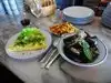 I saw reviews that said this place gets crowded and wanted to avoid that. We went on a Tuesday afternoon and it was empty with the cooks prepping for the evening rush. Our food was very good and the service was adequate. The waiter really didn't have a firm grip on how to describe the food, but he was friendly. The cooks who were working behind the counter spoke to us and told us how to make some of the recipes.
