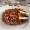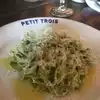 I was a little skeptical when we pulled into the parking lot, but my skepticism quickly faded the moment we sat down. Although the physical surroundings aren’t anything to write home about, the coziness of the outside dining space, combined with the great service and delicious food made the parking lot location of the dining space a non-issue. The French onion soup was so flavorful- a richly flavored broth with the perfect topping of torched Gruyère. I tasted the salad that came with my daughter’s crocque monsieur, and I could have made a whole dinner out of that fresh and flavorful side salad - so simple, yet SO delicious! I don’t even know where to begin to express how unbelievably tasty my trout was! It was a pink trout (which I had never seen before, and which our server was quick to explain the origin of) with the most amazing lemon almond sauce - I could have licked the plate! The amount of lemon was perfect, and the entire plate was framed with a ring of the almondine sauce; I think I ate every almond on the plate! I would HIGHLY recommend Petit Trois - you won’t be disappointed!!
