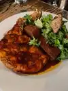 I wish I could rate Petit Trois higher. Andrew Zimmern featured Petit Trois in his season 8 of Delicious Destinations. He's on target about how great this is. I had the omelette. I thought I had died and gone to omelette heaven made by omelette angels. Truthfully. This was the best omelette served with the best salad I've ever had. I cannot imagine where they get the eggs and cheese to make this masterpiece. Wonderful. My daughter had the Confit-Fried Chicken Leg. Wow. Perfect. We started with Burgandy Escargots. Seriously folks - this is what escargot should taste like and more than that - this is how well cooked they need to be. Nothing tough and nothing bad about them - all good! The bread was awesome - I needed to ask for more. We ended with rice pudding. Ah man, I feel bad writing this - but it was wonderful. Look. Parking is rough anywhere in LA. This is no exception. This place is small. It's worth it though. We sat at the counter and watched our chefs make and plate our lunch. They are masterful. I told them I love watching them because they put so much care into everything - they responded that they love their jobs. It shows. Our waitress was attentive and caring. I can't find anything wrong with Petit Trois. I hope to be back soon and often.