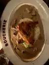 The ambiance is definitely the highlight: charming decor, cozy lighting, and classic French vibes. We ordered two cocktails, and the Papillon was crisp, refreshing, and probably my favorite part of the evening. The escargot appetizer was excellent — rich but not overpowering, especially good with the house bread. As for the mains, the pork chop was tough and dry, while the beef bourguignon was much better — tender and flavorful, with hearty mashed potatoes underneath. Service was polite but the wait for food was longer than expected. Overall, it’s a lovely spot for drinks and conversation, but I wouldn’t come for the main dishes alone.