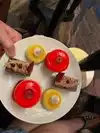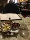 Lovely glass of chilled champagne and an assortment of nibbles on the table. Great service and nice to listen to the pianist late in the evening.