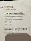 Great caviar at good price limited on wine selections - should be able to accommodate more at this type of venue