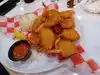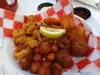 My husband and I shared the butterfly shrimp with hush puppies and cole slaw and were very happy. The shrimp was good and it was great to have something special when waiting for our next airplane.