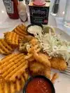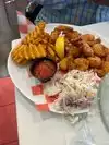 Staff was friendly and quick. Crab cake and shrimp.were good, though shrimp was very small. I expected more than 5 shrimp and 1 crab cake for 30 dollars though. Cole slaw and fries were inedible. Overall will not probably return.