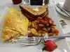 Crab omlet is very good. Potatoes ok. Coffee good. Nice breakfast between flights. Restaurant also has a flight schedule screen behind the bar that is helpful