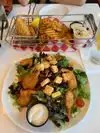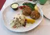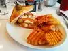 First of all, good service. Thank you Kashmere for being so helpful and fun! Ordered a seafood platter and love the crab cake! Very hearty! This meal makes a long haul flight and the long wait for a connecting flight much more tolerable!