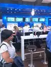 We were both asked for our ID in order to place an order for a glass of beer and of wine. This is odd in that we are clearly seniors. The food was good. As we were not too hungry, we ordered from the appetizer menu. The seafood sampler was plenty, with some steamed veggies and a fruit plate added. Great spot with lots of windows in which to spend a few minutes. We were shown outlets where we could charge our phones, and the monitor where flights could be checked. Very friendly staff.