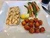 We ordered grilled salmon and grilled Mahi mahi. Both were excellent. The sides were very tasty grilled vegetables (carrots and broccoli) and mashed potatoes.