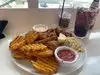 Wife and I ate here on our way back back home from the Bahamas. She had the cream of crab soup and the fried seafood sampler, I had the angus burger. Iced tea and soda to drink. Good service.