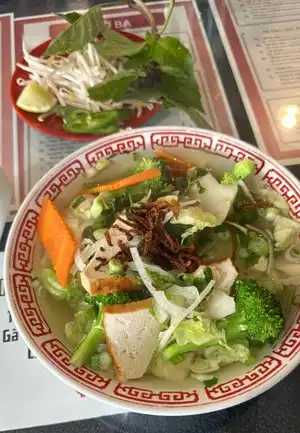This is a great place for Pho although there are other options. We also tried the noodles, the stir fry and the vegetarian option. The sign now says Pho Ba, but the broth is still delicious.