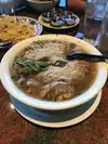 The soup is nothing to brag about. Broth not very appealing. Also tried the salt & pepper pork chop, cha gio, and drunken noodles. All we're ok, but not at all what we expected from the highest rated pho joint in LV. Nothing stood out as good. Just average at best. As others have said, the impression I got was the only good thing about this place is it's open 24 hrs., and would probably be good if you're plastered at 3 or 4 in the morning. The girl who served us gouged us with $5.50 worth of extra charges without telling us anything. She charged us 2 bucks each for extra meat on the two bowls and $1.50 for rice with the pork chop. Since we didn't want to leave LV without a good bowl, we ate at pho so 1 the next day for lunch, and it was a night and day difference. They put this place to shame.
