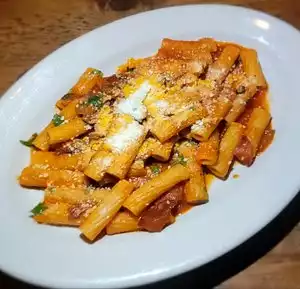 Rustic chic small Italian restaurant with brick oven pizza and pastas Cute place to sit outside for drinks and some appetizers or a nice brick oven pizza. Friendly service, yummy food and reasonable prices :)