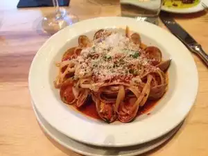 Nice atmosphere and very tasty Italian pasta dishes. The wait time for the food to arrive is often long, but maybe that is normal for making these dishes. Great for business meetings due to large size and quiet environment. It is very roomy and bright...not a dark place. I would recommend.