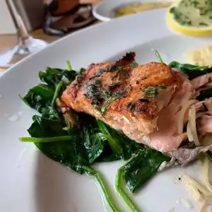 Wife and I frequent this restaurant for lunch more than dinner. Good variety of salads to which one may add chicken shrimp or salmon. Also have well prepared flounder, salmon, and shrimp entrees. Bread is too good, served w seasoned olive oil. Busy happy hour. Reservations are accepted.