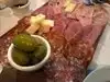 We had not made reservations but were in the area about 10 minutes before opening. By the time the restaurant started seating people, the line to get in had increased quite a bit. We were lucky & managed to get a table without a reservation. Service was friendly and the food was very good. We ordered the antipasta platter, carbonara & straccetti. Antipasta board was good but I especially LOVED the prosciutto. It was SO dry, so thinly sliced and so delicious - could have eaten a ton of it! The Man says the carbonara here is the best in town. I'm not normally a fan of the dish, but Piazza Italia's was a little bit different than other ones I've tried ....in a good way. Not something I would order but here, if it was accidentally served to me, I would gladly eat it. The straccetti was not very tender and heavily seasoned. Loved the flavor, just too much of it.