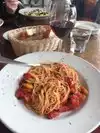 Having passed this storefront restaurant the previous evening, I took note of the warm, exotic aromas that identified this location as a “must” to visit. The building is approachable and polite in its visage. It is well decorated and professionally staffed... clean and well tended. There is a small outdoor eating area which is streetside, yet far enough from the curb to insulate you from too much exposure to pedestrians and traffic. The waiter, Alessandro, was superb in his skills, very discreet and polished for a young man, who was attentive and willing to converse in a respectful and gentle manner. He answered all our questions concerning the fare and libations to our expectations The meal was delivered in short order; an appetizer of tomato, mozzarella, and basil, beautifully presented with crisp bread and oil. The entrees included grilled salmon with vegetables and spaghetti and meatballs. Both were delicious and well portioned plates. The salmon was not seasoned though some salt and pepper did enhance the flavor. Wine and beer were also enjoyed. The room never quite filled up but their was a steady stream of tourists coming and going, speaking a multitude of languages but all seeming to enjoy the atmosphere and subtle charm of the location, food and staff.