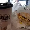 Amazing breakfast bagel with Egg, Cheese and bacon. Definitely a place I would go for breakfast again. I like The atmosphere of how fast, that they Can make it.