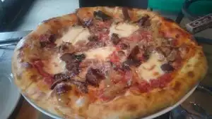 We ordered for delivery to our hotel. Service was quick, pizza was hot. Quality ingredients on the pizza. We had the pepperoni and the chicken. Both were excellent. This is much better than the normal pizza delivery services as the cheese and toppings are quality.