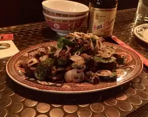 The food here is great but it’s not cheap. I thought since I’m in the East Village, I can get some cheap, good food but no luck, Sitting at the bar, you begin to appreciate the cooking as you smell the spices and aroma of the cooking. It smells like home cooking with natural ingredients. The bar is in front of the kitchen so not recommended on a hot summer day. Be warned that the aroma will stay on your clothes throughout the day. I enjoyed the unique Asian beers as well. The baby octopus is not bad. The duck is terrific and I thought all Asian places cook their duck well done but not here. Nice and medium here. Be warned that portions here are quite large and so if you’re not sharing, you are probably over-ordering. My beers, appetizer, and entree netted me almost $80 which I thought is a bit too much for Asian food but it’s not Chinatown so I suppose prices will mostly double. I’m not really sure that I want to come back because I feel I can get similar in Chinatown and I hate the loud rap music. Service is also slow and not the best especially when it’s busy here and it’s often busy here.