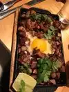 The food at this restaurant is so fabulous I am willing to overlook that it is not a place to comfortably have a conversation. Trying to make a last minute Saturday night restaurant we had to accept a very early evening time in order to be seated and the place was already close to full when we arrived. All this was worthwhile as we started with the sizzling The food is so delicious that, despite the fact that a Saturday night reservation was difficult to get and the noise level made it difficult to get back, I will definitely be back. We started with the Sizzling Sisig, crisp and moist, deliciously seasoned and salted morsels of sizzling pork topped by a raw egg that you quickly mix in on the truly sizzling serving pan so it is no longer raw as you dig. We had the coconut rice as the accompaniment for this and our main course platter of perfectly cooked duck; a generous portion of both breast and leg meat. Plenty of food for 2. On subsequent visits I will have the difficult decision of whether to repeat this memorable meal or keep going down the short menu till I've tried everything. Note: For my next visit I will try going during the week to see if this small restaurant is a little less crowded and noisy outside of prime time. I should also note, if you want your food served more slowly, order one dish at a time. The waitress was friendly and helpful in describing and recommending dishes from this unusual menu.