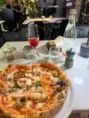 Indoor and outdoor seating but at 9pm they has no availability. The hostess gave us seats at the bar where pizza was 2 for 1. However the bar server said my under21 daughter can’t be served at the bar. No problem for us as we were tired after a 10 hour flight, we got take out, pizzas were great. We will be back. Atmosphere lovely and buzzy.