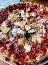 This spot is about a mile from our home. We’ve probably probably eaten here less than half a dozen times pre-Covid. Pizzas always solid. Had a great wild mushroom and salami w/ honey pizza. Also seasonal roasted veggies. All was delicious! Quality ingredients on both pizzas. Only problem- a bit late on pick up time, and automatic tip of 15% 😕 Overall~I’d say if you want Neapolitan pizza, this is it!