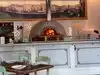 Large ding room, pleasant staff Italian flavor with a pizza oven within it. Unfortunately my pistachio gelato was much too sweet completely overpowering the pistachio flavor