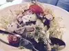 The pizza was small and unimaginative, as opposed to the salad which was skimpy and equally strange. The pizza was near cold, but this could be Caviar's problem. Not worth a second try