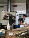 We sat at the pizza bar and watch them make our pizza. The chefs knew what they were doing and took pride in making each pizza. The seating area isn't too big, but the host did a great job of accommodating a lot of people at a busy time. Pizza is baked in a stone oven, cooked quick and had a great crispy bottom. Would definitely go back.