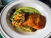 I didn’t know if I should make this a very good or excellent rating. I chose the excellent because the meal I had was just that, excellent! I had the special of that day, pan fried/baked wild salmon from the waters around Vancouver, I didn’t leave anything on the plate! The food is a little pricey, but I really enjoyed the service, location, and most of all the food. My wife had a mixed shell fish meal, and she just left the shells...fun for the foodie!